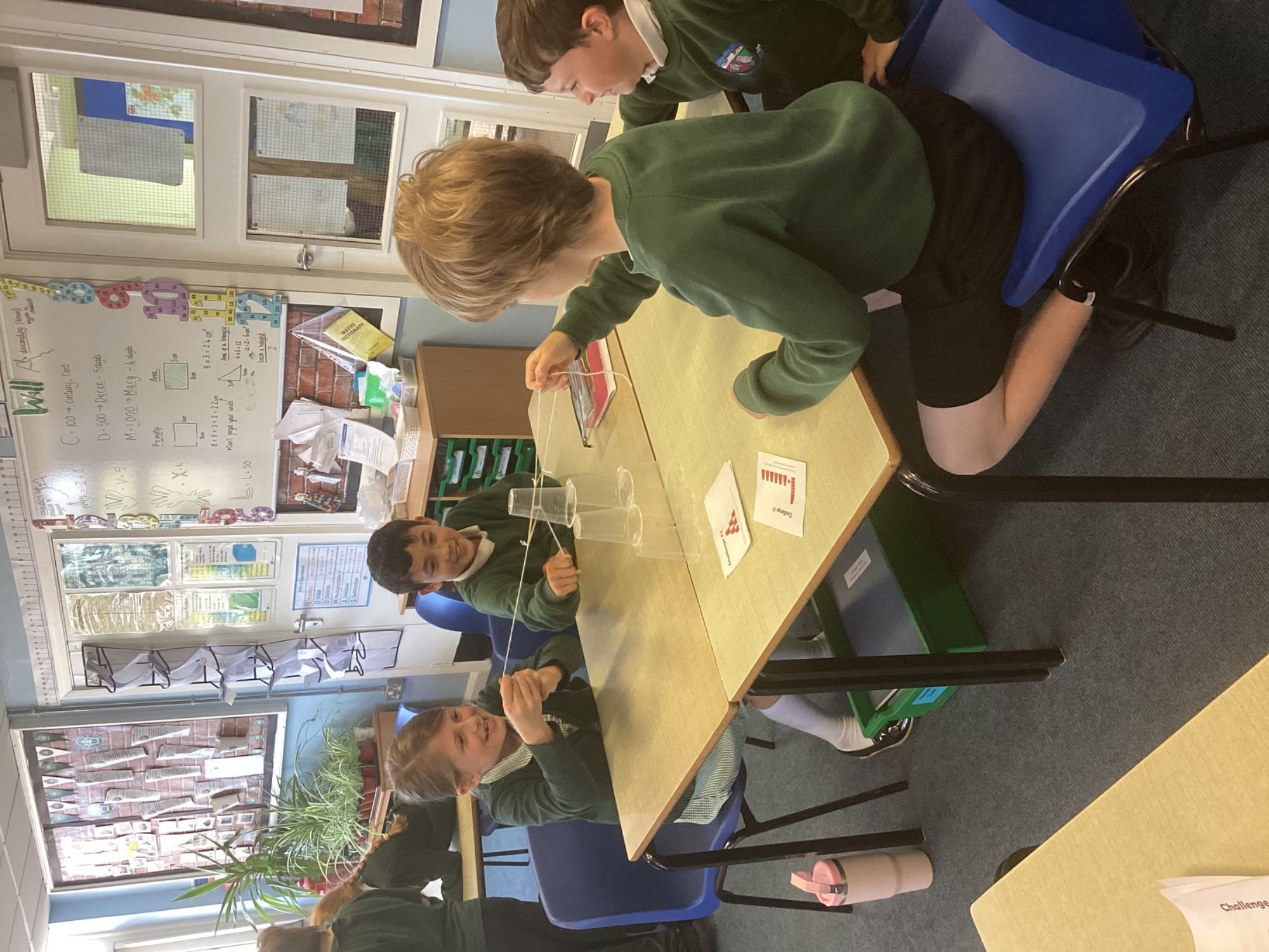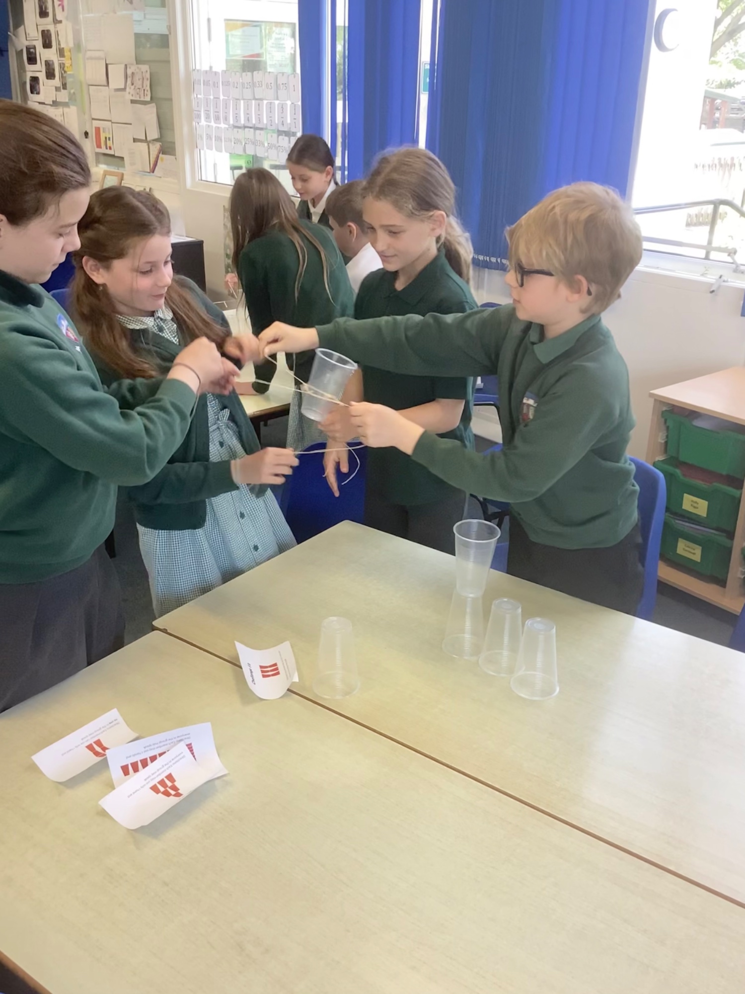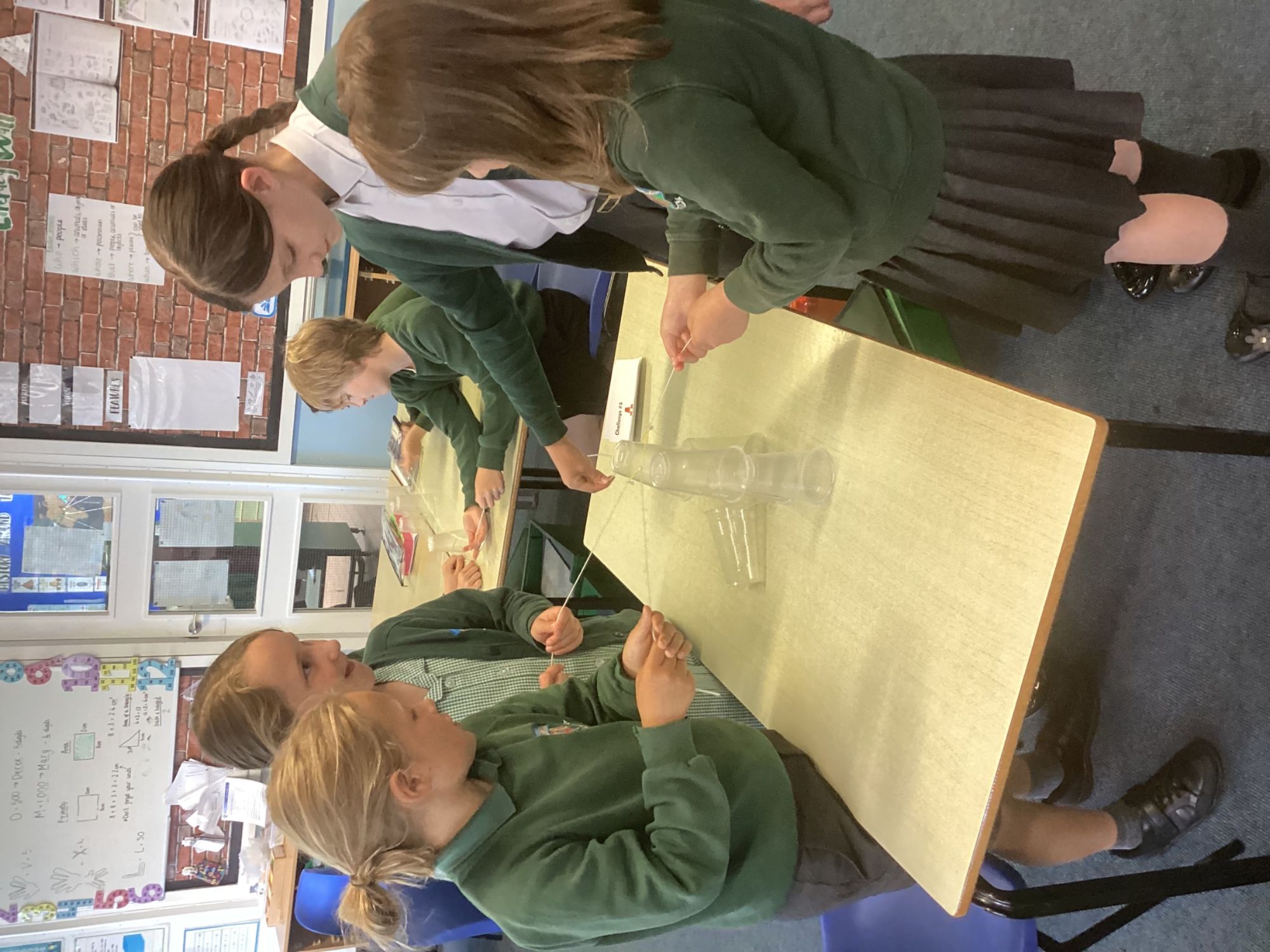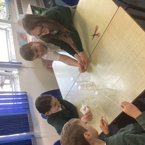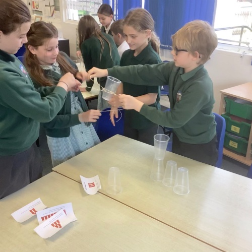 Year 5/6 were working on their team building and resilience by building the tallest paper tower! The extra challenge being that it had to stand up on its own. We also completed the cup challenge. We had to move the cups into an arrange tower using only an elastic band and string.