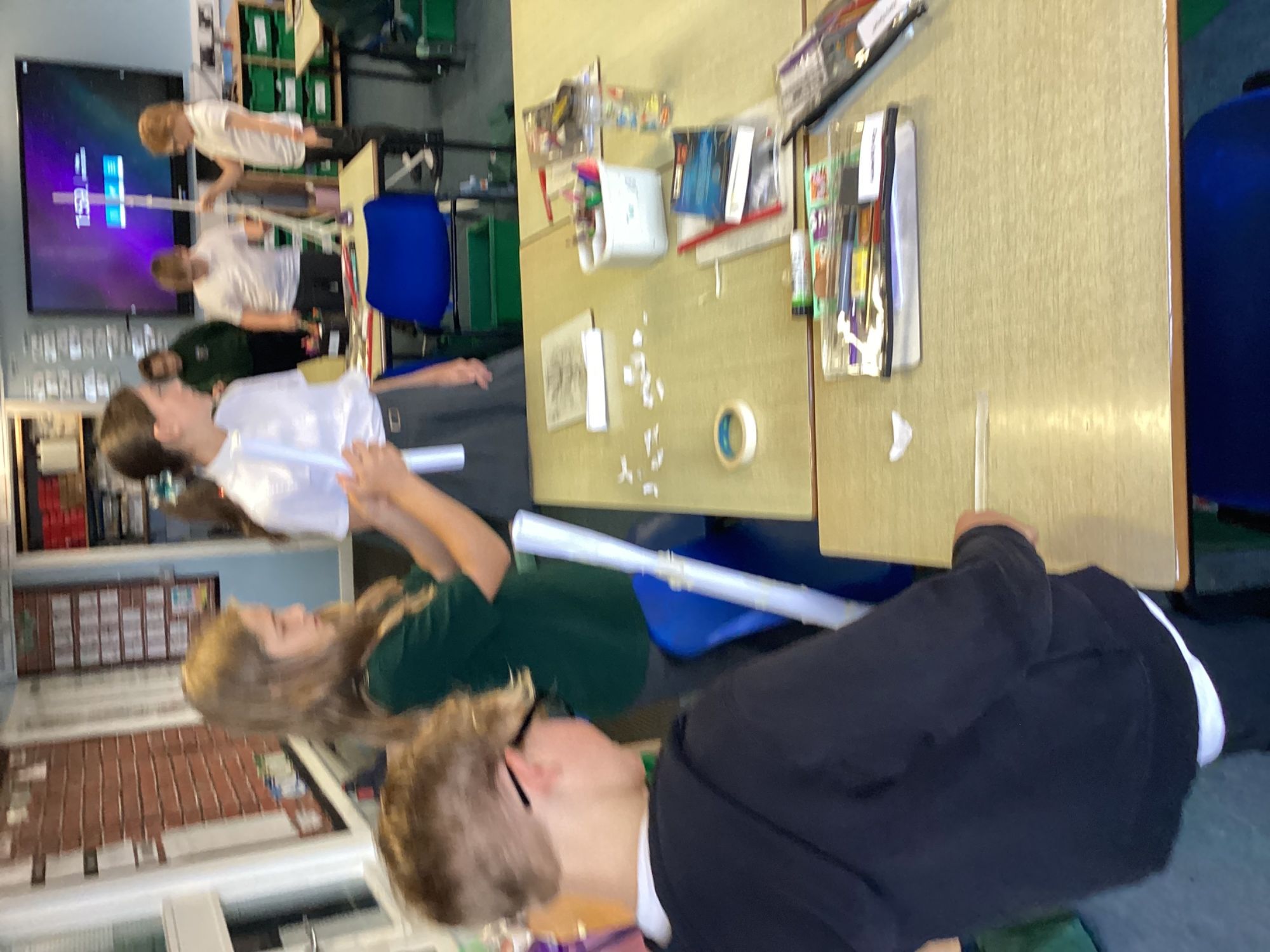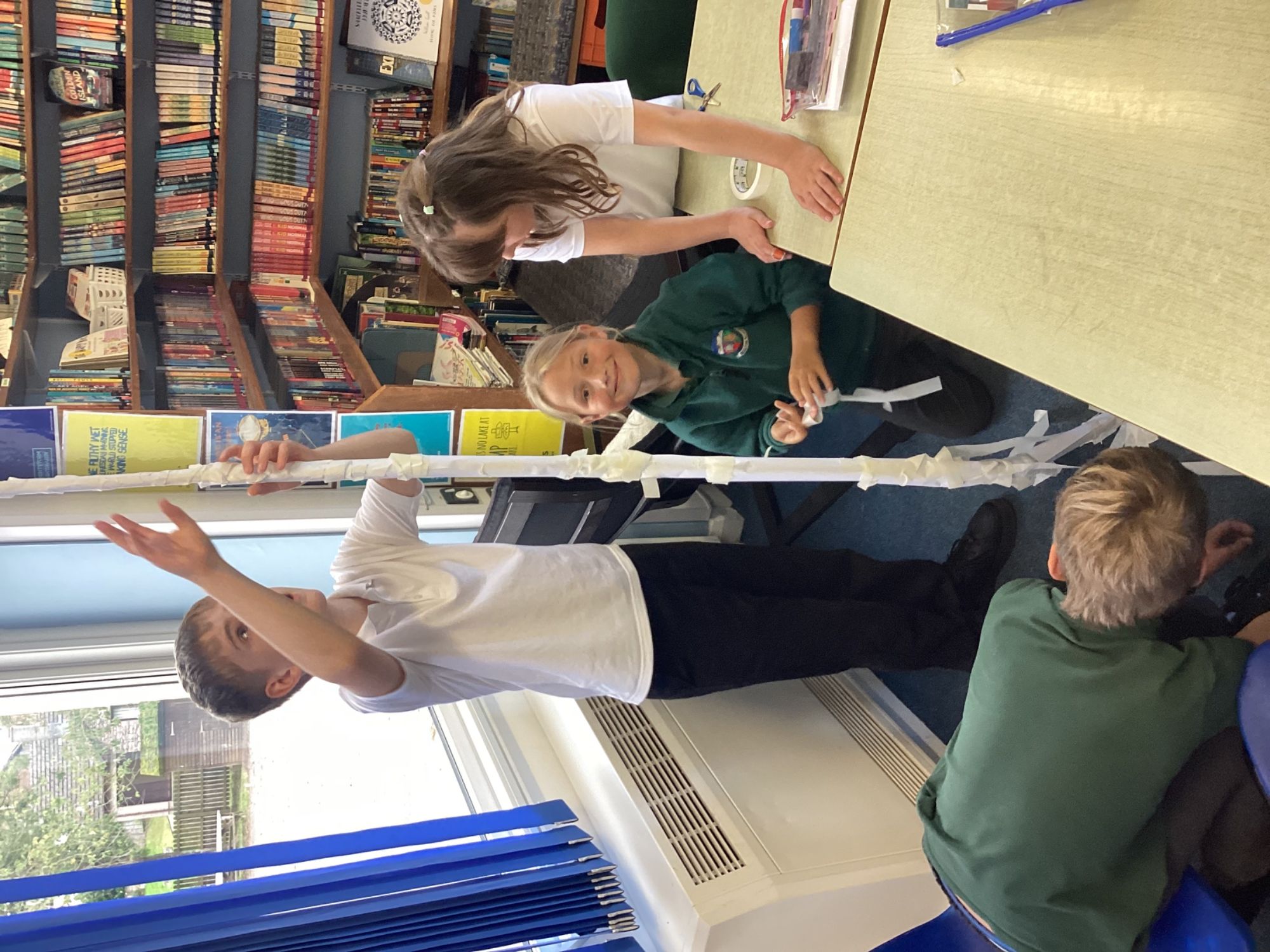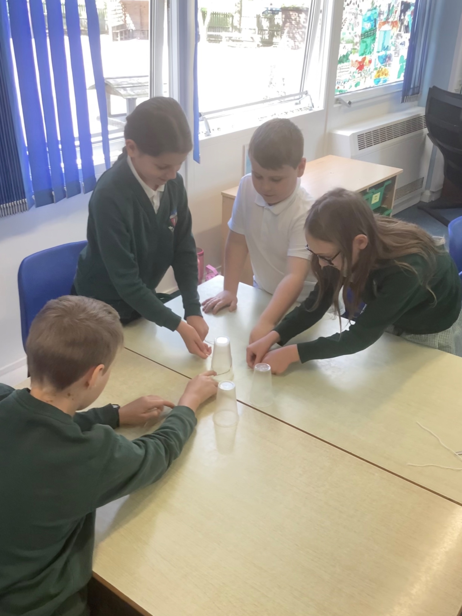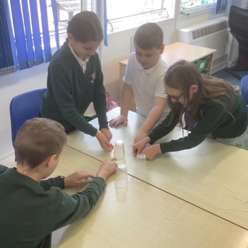 Year 5/6 were working on their team building and resilience by building the tallest paper tower! The extra challenge being that it had to stand up on its own. We also completed the cup challenge. We had to move the cups into an arrange tower using only an elastic band and string.